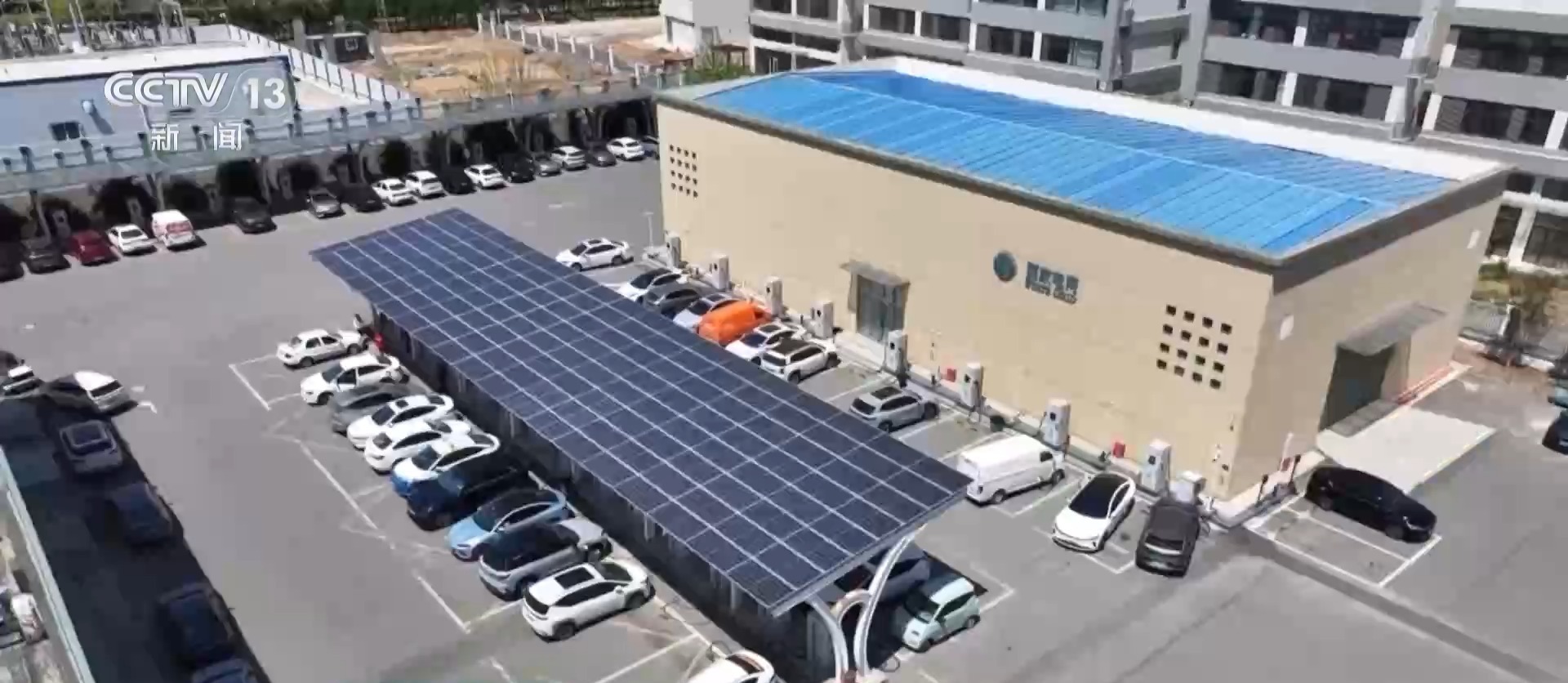 在超級快充站的頂棚上、高速公路邊坡、服務區(qū)的屋頂上都鋪滿了光伏板。工作人員介紹,這些光伏每年可以發(fā)出115萬度的綠電,除了可以供應超級充電站的用能需求,還能滿足整個服務區(qū)的日常用電需求。