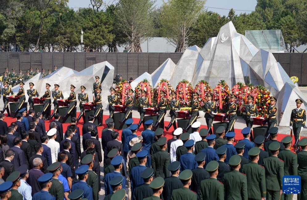9月13日拍攝的第十二批在韓中國人民志愿軍烈士遺骸安葬儀式現(xiàn)場(chǎng)。新華社記者 潘昱龍 攝
