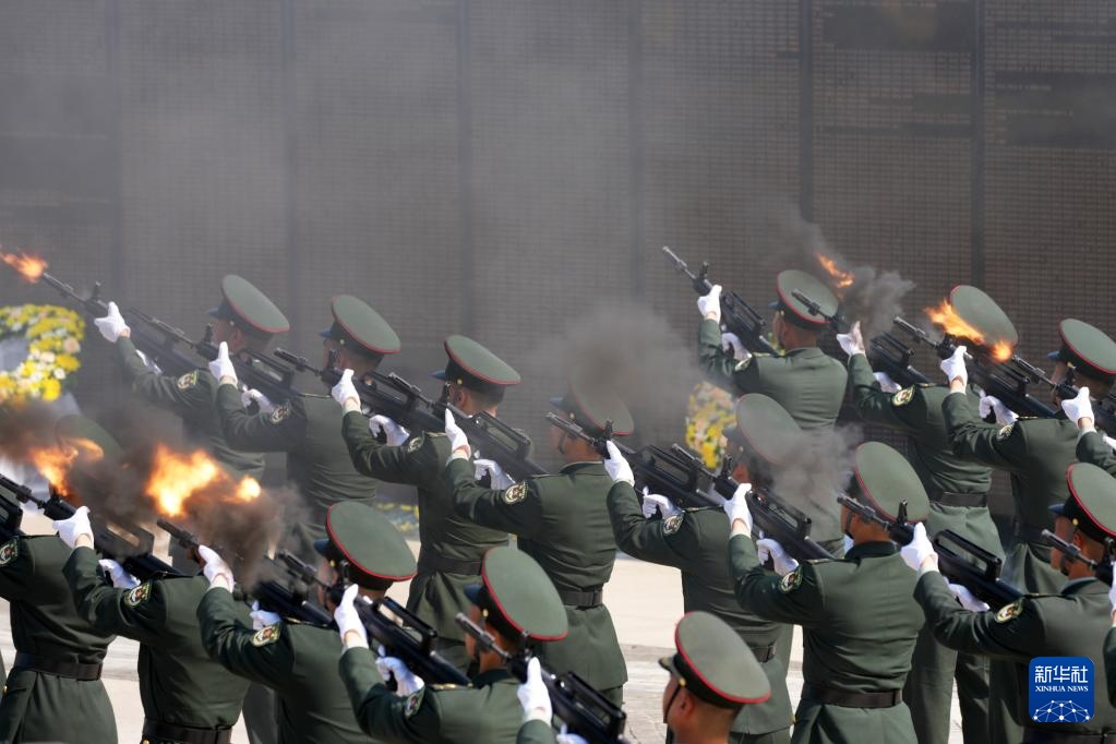 9月13日,禮兵在安葬儀式上鳴槍致敬。新華社記者 楊青 攝