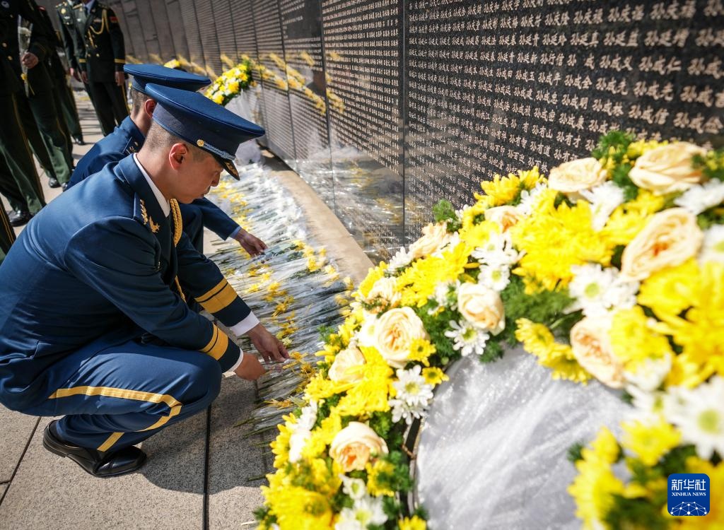 9月13日,空軍空降兵某部“黃繼光英雄連”官兵向烈士英名墻獻(xiàn)花。新華社記者 潘昱龍 攝
