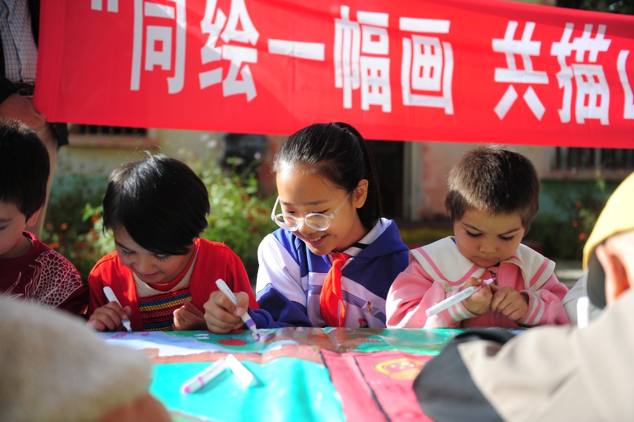 兩地小朋友一起繪制巨幅畫卷