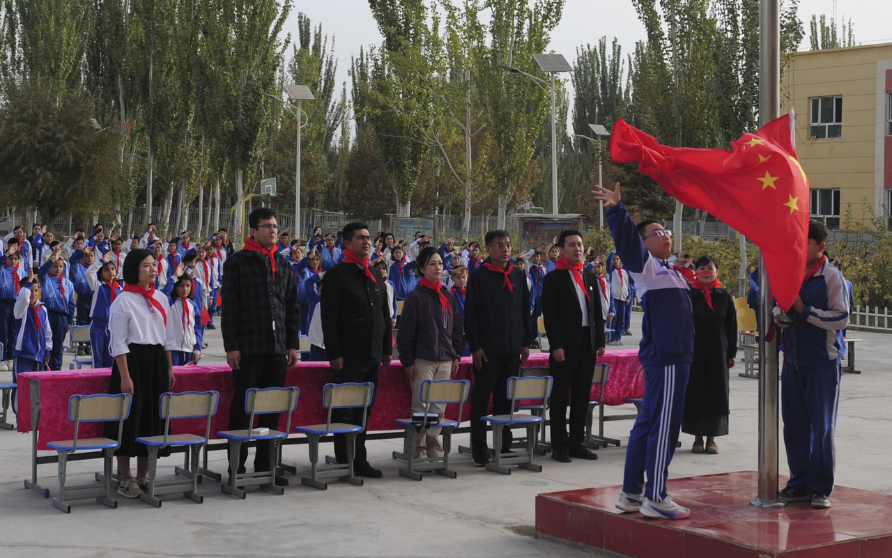 9月23日至25日,秦皇島經(jīng)濟技術(shù)開發(fā)區(qū)第二小學(xué)“小海星”志愿服務(wù)隊的5名小學(xué)生在老師帶領(lǐng)下,前往新疆開展此項志愿服務(wù)活動。他們?yōu)榘⒖颂湛h塔爾塔吉克民族鄉(xiāng)中心小學(xué)和阿勒瑪勒克村幼兒園的孩子們帶去了文具、書籍等禮物,并共同參與升國旗、課堂教學(xué)、長卷繪制等環(huán)節(jié)。
