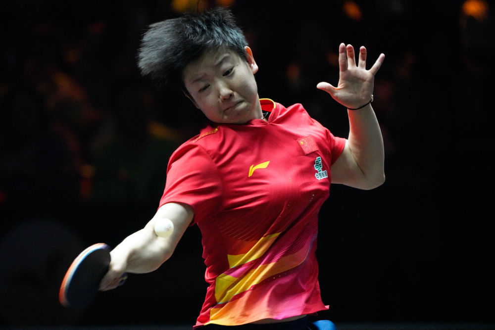 9月28日,孫穎莎在比賽中回球。新華社記者 謝晗 攝