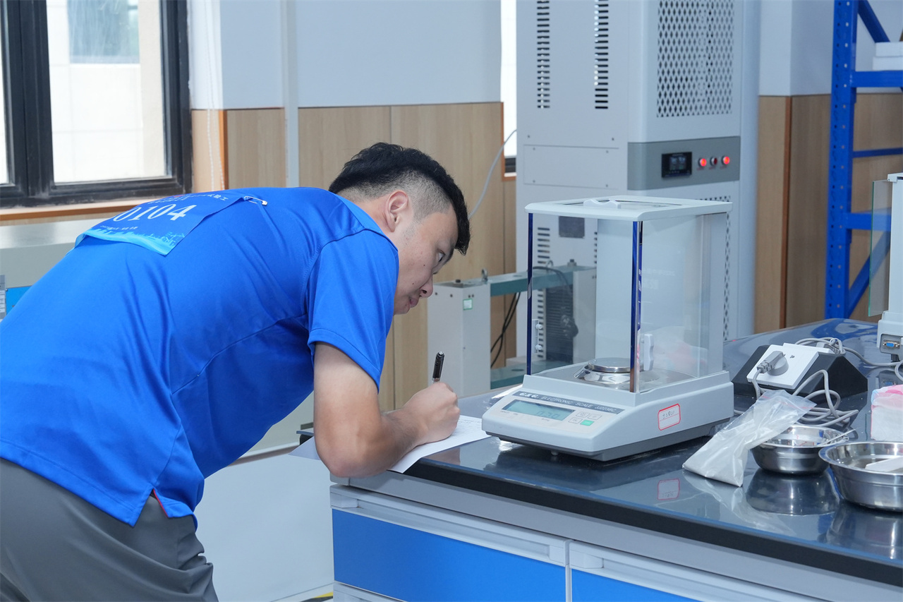 大賽以“錘煉過硬技能,服務重點工程”為核心,構建“理論+實操”的綜合考評體系,其中理論考試占總成績30%,實操考核占比70%,全面檢驗選手專業(yè)素養(yǎng)。理論考試涵蓋混凝土及原材料、金屬材料、土工等多領域國家標準與行業(yè)規(guī)范,精準考查選手理論功底;實操環(huán)節(jié)聚焦膠凝材料比表面積測定、機制砂亞甲藍值檢測、鋼筋保護層測試、灌砂法量砂密度測定4項核心技能,均為重點工程試驗檢測中的關鍵工序,直擊崗位實操痛點難點。