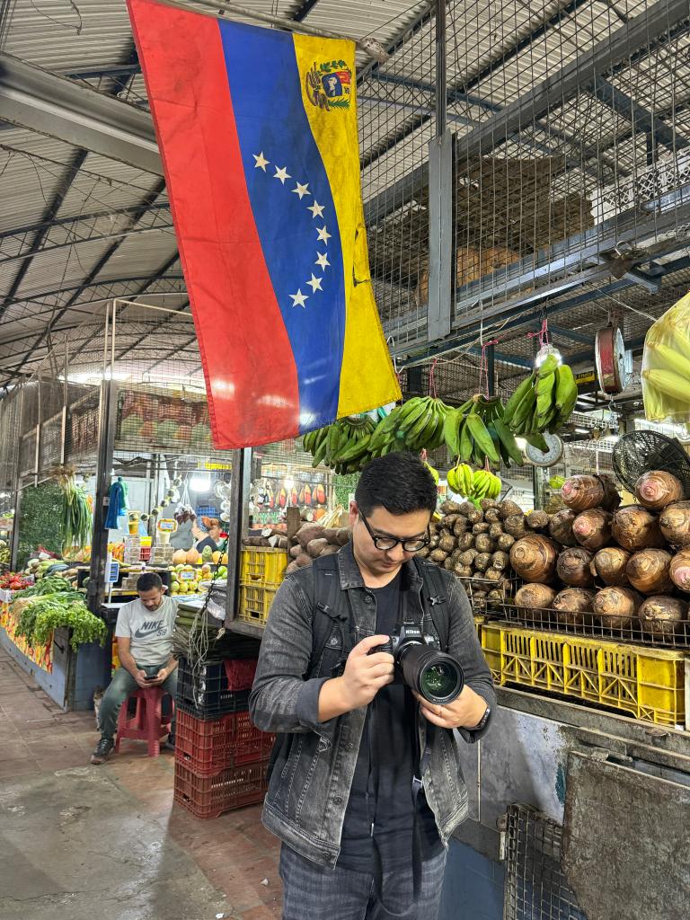 12月5日,我來到加拉加斯最具煙火氣的金塔克雷斯波市場(chǎng)。這座歷史悠久的市場(chǎng),自半個(gè)多世紀(jì)前便是歐洲移民扎根創(chuàng)業(yè)、文化融合的舞臺(tái)。我想知道,在沖突的陰霾下,這個(gè)最接地氣的地方,是否還保有自己的節(jié)奏。如今,外界的局勢(shì)像是被懸在天空的一塊巨石,隨時(shí)可能落下,但這個(gè)市場(chǎng)顯然有它自己的時(shí)間表。