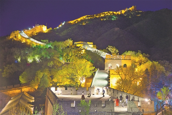 圖為4月23日晚,部分文旅代表在八達嶺長城景區(qū)游覽。本報記者 王偉偉 攝