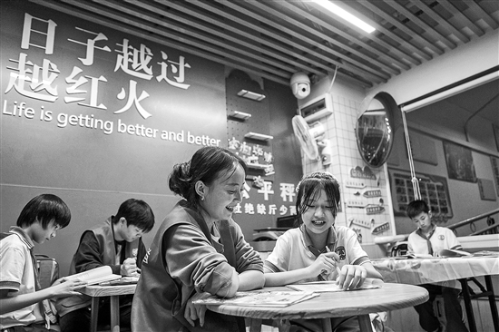 2024年10月,長沙市開福區(qū)新河街道華夏路社區(qū)聯(lián)合華夏農(nóng)貿(mào)市場(chǎng)實(shí)施改造,打造閱讀空間——“四點(diǎn)半角”,解決商戶子女課后管理等難題。近日,重新升級(jí)打造的“四點(diǎn)半角”正式亮相,燈光更加明亮,書籍種類更加豐富。 新華社記者 陳思汗 攝