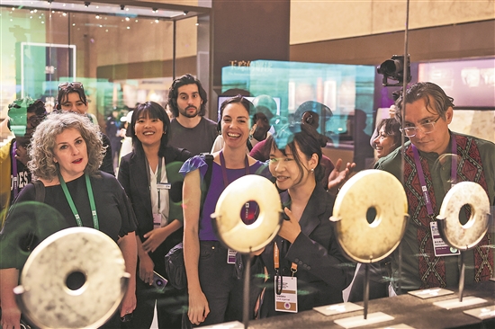 4月23日,參加第三屆聯(lián)合國(guó)教科文組織國(guó)際博物館高級(jí)別論壇的嘉賓在參觀良渚博物院。