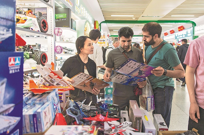 近日,浙江金華義烏國(guó)際商貿(mào)城里,外國(guó)采購商在與商家洽談采購商品。
