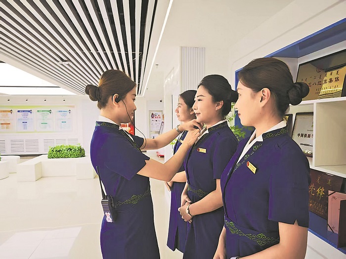 日前,中國鐵路呼和浩特局集團有限公司包頭客運段高鐵車隊組織“動姐”們開展禮儀培訓,為即將來臨的暑運安全運輸保駕護航。本報通訊員 程鵬 攝