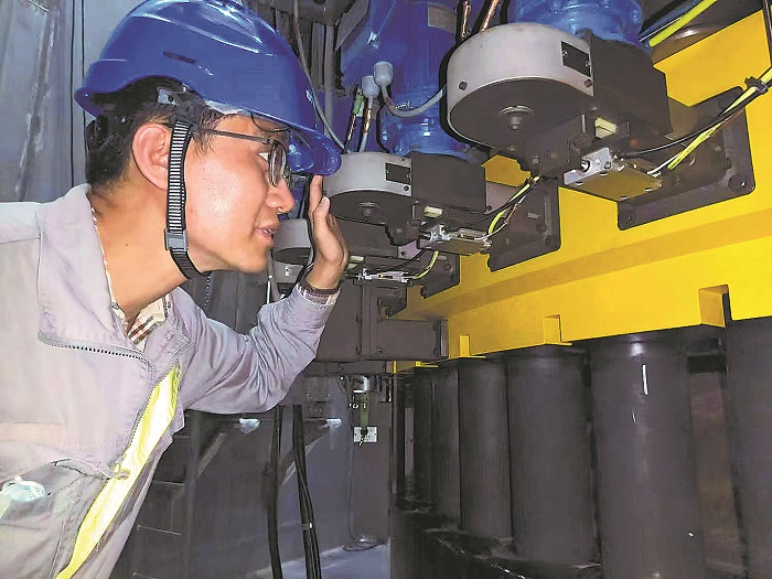 當最后一組力矩數(shù)據(jù)被記錄下來,胡建強臉上露出笑容,在機器的轟鳴聲中向身邊的同事比了個OK的手勢。他面前這臺已經(jīng)完成全面“體檢”的整體螺栓拉伸機,將在大修開始后正式發(fā)力。