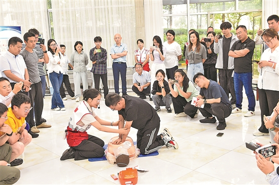 9月2日,陜西省建設(shè)工會在寶雞市眉縣國家安全生產(chǎn)應(yīng)急救援培訓(xùn)演練基地——中鐵二十局太白山520職業(yè)教育培訓(xùn)中心,舉行陜西省建筑行業(yè)偏遠艱苦項目AED示范性配送活動,為30余個艱苦偏遠項目配發(fā)AED設(shè)備(自動體外除顫器),同步開展應(yīng)急救護技能專項培訓(xùn),以提升一線職工生命安全應(yīng)急救援能力。本報通訊員 韓展展 本報記者 毛濃曦 攝
