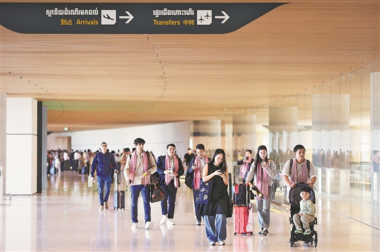 柬埔寨最大機場德崇國際機場當?shù)貢r間9月9日正式投入運營。由柬埔寨航空公司執(zhí)飛的廣州至金邊航班成為首架降落的商業(yè)航班,飛機降落后接受了水門禮。機場由柬埔寨機場投資有限公司投資建設(shè),中建三局負責施工,于2020年開工建設(shè)。圖為9日首批乘客抵達德崇國際機場。