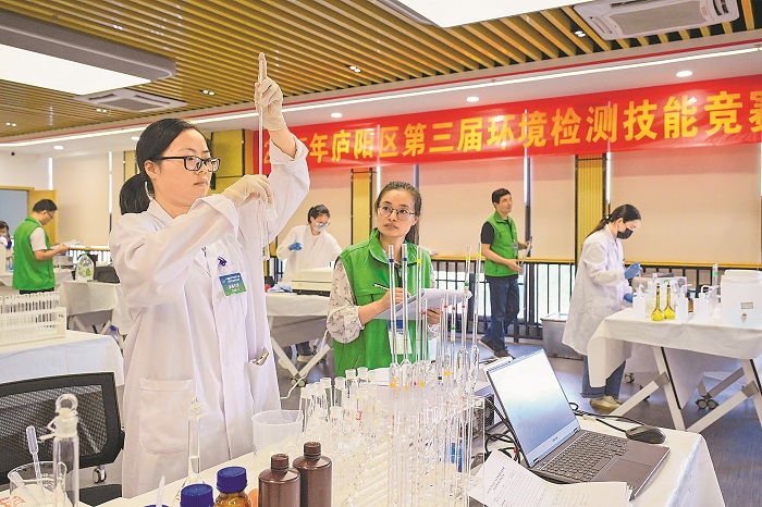 近日,在安徽省合肥市廬陽區(qū)黨群服務中心,水環(huán)境檢測參賽選手正在進行實踐操作比拼。當日,廬陽區(qū)總工會舉辦第三屆環(huán)境檢測技能競賽,來自全區(qū)38家從事環(huán)境保護檢測的企業(yè)及高校80人同臺競技,進行環(huán)保技能實操比拼,以賽促學、以賽促練。本報通訊員 趙明 攝
