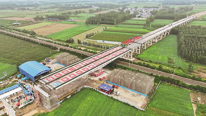 2.7萬噸上跨京九鐵路立交橋轉(zhuǎn)體成功