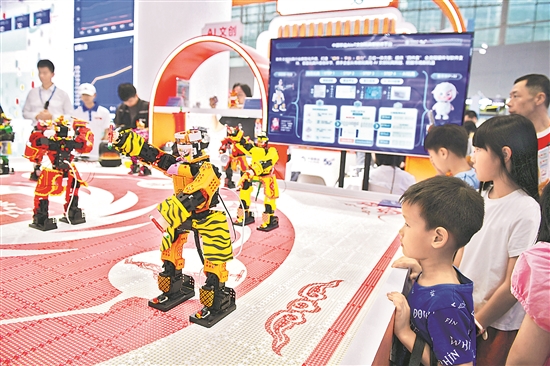 圖為機(jī)器人在現(xiàn)場表演英歌舞。新華社發(fā)(許建梅 攝)