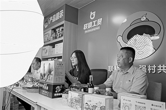 近年來,山東省萊西市院上鎮(zhèn)以特色產(chǎn)業(yè)發(fā)展為引擎,建立鎮(zhèn)村兩級(jí)強(qiáng)村共富公司,通過規(guī)?;N植、企業(yè)化運(yùn)營、集群化增收三大路徑壯大集體經(jīng)濟(jì)實(shí)力,增加居民收入。圖為院上鎮(zhèn)峴沽新村黨支部書記張吉玉(右)在本村強(qiáng)村共富公司直播間內(nèi)推介特色農(nóng)產(chǎn)品。新華社記者 朱崢 攝