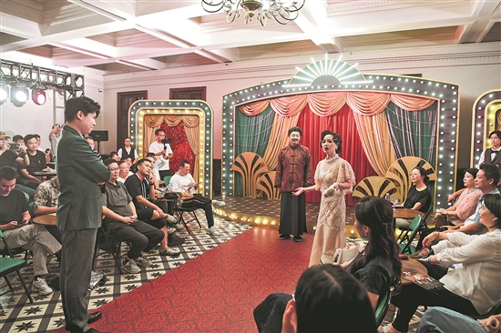 近日,上海奉賢,南塘戲劇社文藝愛好者在沈家花園沉浸式舞臺(tái)表演原創(chuàng)紅色公益戲劇《子夜》。據(jù)悉,奉賢南塘戲劇社自2016年成立至今,累計(jì)策劃、執(zhí)行文化活動(dòng)近300場(chǎng),創(chuàng)排原創(chuàng)文化作品百余個(gè)。視覺中國(guó) 供圖