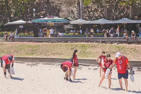 當?shù)貢r間9月20日,數(shù)百名志愿者在巴西里約熱內(nèi)盧多處海灘參加世界清潔日活動。該活動旨在推廣可持續(xù)理念,呼吁公眾通過日常行動守護地球,提升社會對環(huán)境保護和循環(huán)經(jīng)濟的關(guān)注。圖為志愿者在巴西里約熱內(nèi)盧科帕卡巴納海灘上撿拾垃圾。新華社記者 王天聰 攝