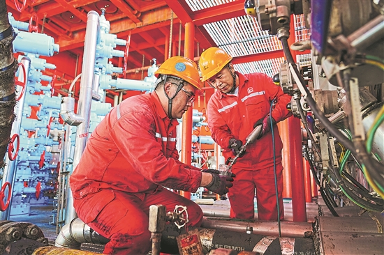 中國(guó)石化勝利油田海洋采油廠埕北22F平臺(tái)圍繞扎實(shí)開(kāi)展全國(guó)“質(zhì)量月”活動(dòng)。在海上化學(xué)驅(qū)開(kāi)發(fā)中,嚴(yán)格把控藥劑質(zhì)量、母液配制等關(guān)鍵節(jié)點(diǎn),強(qiáng)化指標(biāo)控制,精細(xì)注采調(diào)配,提升注聚質(zhì)量。張燦 攝