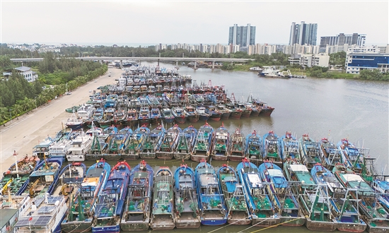 9月24日,漁船就近在海南省瓊海市潭門港避風(fēng)(無(wú)人機(jī)照片)。