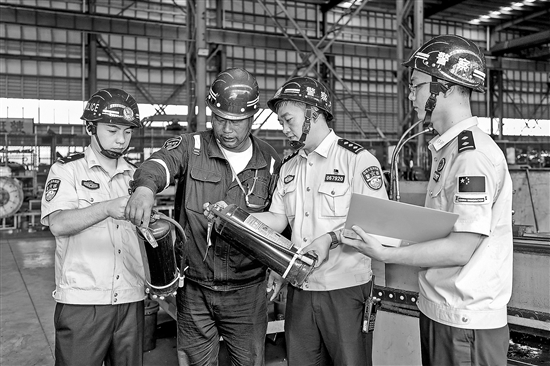 國慶中秋“雙節(jié)”臨近,為護(hù)航轄區(qū)企業(yè)平安發(fā)展,9月23日,浙江省舟山市岱山縣公安局聯(lián)合舟山出入境邊防檢查站執(zhí)勤二隊走進(jìn)轄區(qū)船企,開展節(jié)前“安檢”、法治宣傳,護(hù)航企業(yè)平安發(fā)展。