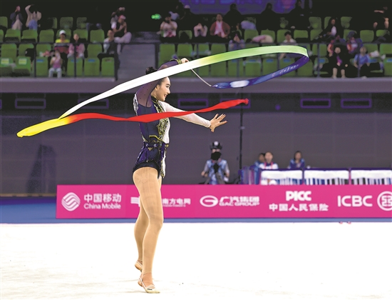 11月10日,河北隊選手栗慧琳在藝術(shù)體操個人全能比賽中。本報記者 王羨茹 攝