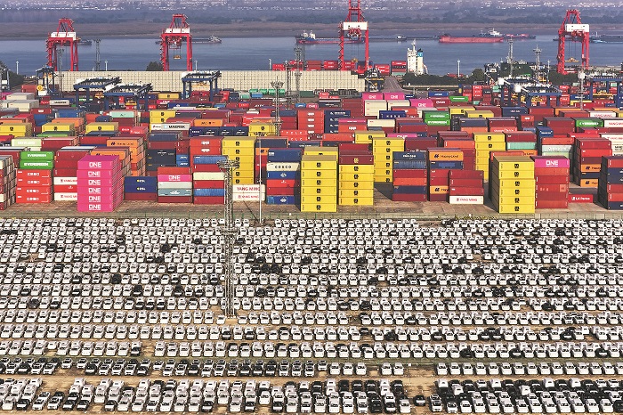 11月12日,一大批汽車在江蘇省港口集團南京港龍?zhí)陡蹍^(qū)準(zhǔn)備裝船出口。
