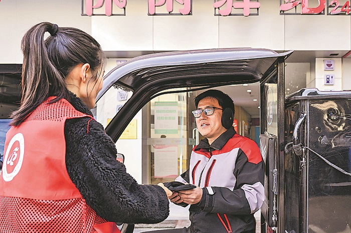 11月10日,在安徽省合肥市廬陽(yáng)區(qū)海棠街道華孚城隍廟戶外勞動(dòng)者服務(wù)站點(diǎn),社區(qū)志愿者把冬季保暖手套送給快遞小哥。近年來,海棠街道充分發(fā)揮社區(qū)志愿服務(wù)積極作用,依托工會(huì)驛站,組織由社區(qū)志愿者組成的愛心針織隊(duì),為新就業(yè)群體等戶外勞動(dòng)者編織暖心手套、圍脖,傳遞社區(qū)居民對(duì)他們的關(guān)愛與溫暖。本報(bào)通訊員 趙明 攝