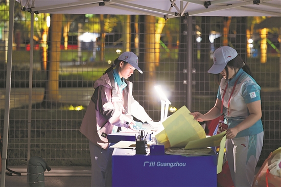 十五運會志愿者。本報記者 王偉偉 攝