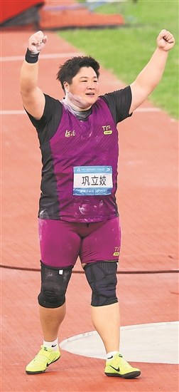 鞏立姣在比賽后慶祝。本報(bào)記者 竇菲濤 攝