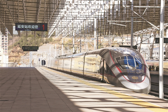 11月17日,一列試驗(yàn)動(dòng)車(chē)組抵達(dá)延安站。