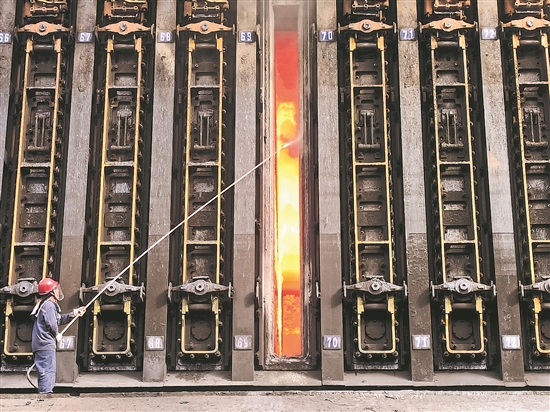 為保證焦?fàn)t裝置穩(wěn)定運(yùn)行,安徽淮北礦業(yè)集團(tuán)臨渙焦化公司采用濕式噴漿法對焦?fàn)t炭化室燒損部位進(jìn)行噴涂耐火材料修復(fù),從源頭上治理炭化室與燃燒室串漏。圖為11月11日該公司煉焦二分公司焦?fàn)t炭化室班組職工正在進(jìn)行噴漿施工。