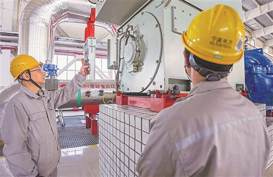 圖為在位于寧夏銀川的國能寧夏供熱有限公司中繼泵站內(nèi),工作人員檢測循環(huán)泵電機(jī)溫度,保障群眾溫暖過冬。新華社記者 楊植森 攝